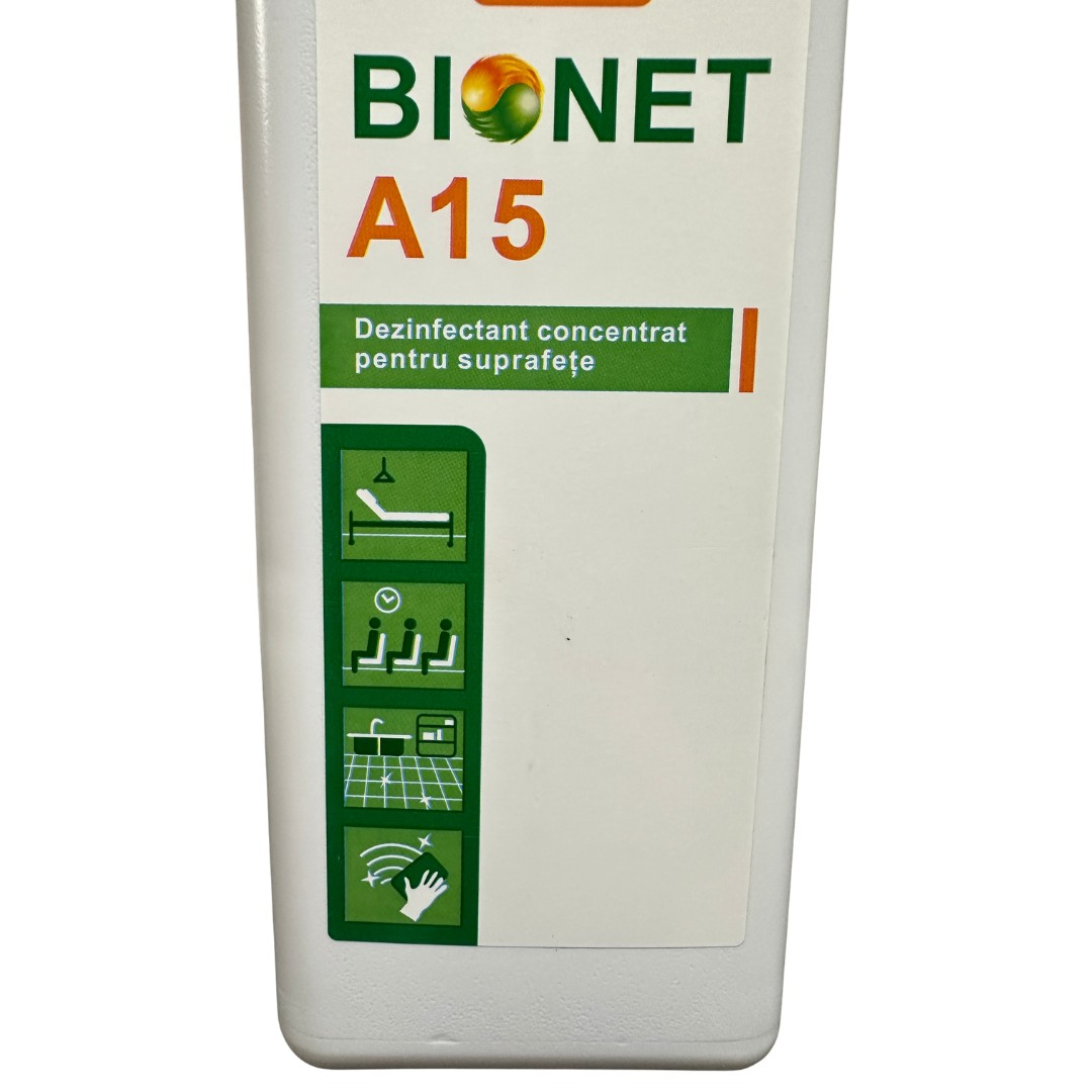 Bionet A15 este un dezinfectant concentrat pentru suprafete, destinat utilizarii profesionale. Se utilizeaza prin dilutie, oferind flexibilitate in functie de gradul de murdarie si necesarul de dezinfectie.