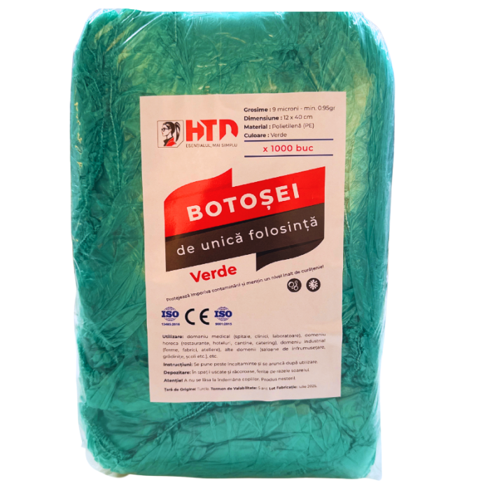 Set 1000 bucati acoperitori pantofi de unica folosinta, verzi, din polietilena.